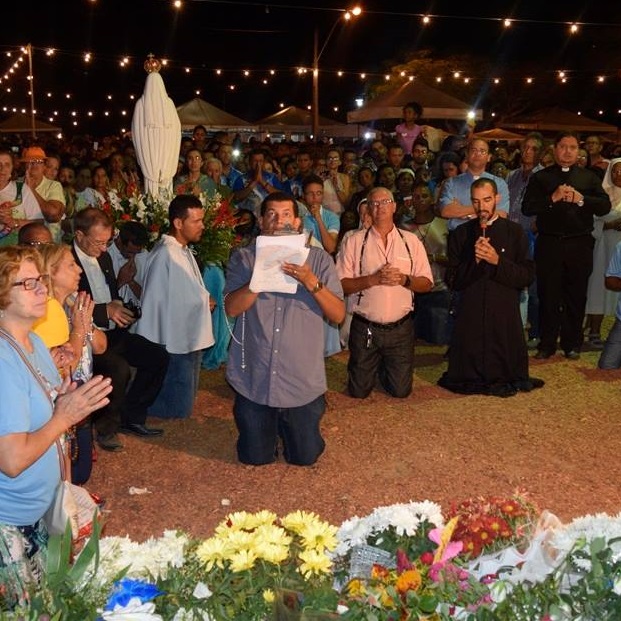 Pedro: Mi trovavo per un incontro a Belo Horizonte, nello stato di Minas Gerais. C’erano circa 5.000 persone. C’è stata l’esposizione del Santissimo e poi dovevamo dire il rosario. Il sacerdote mi ha chiesto se andava bene se dicevamo il rosario con il Santissimo esposto e io ho risposto che mi sarei adattato a quello che lui voleva, perché io sono soltanto un laico. Alla fine del rosario la Madonna è apparsa e per la prima volta l’ho vista in ginocchio. Ha trasmesso il messaggio come sempre, ma in ginocchio.