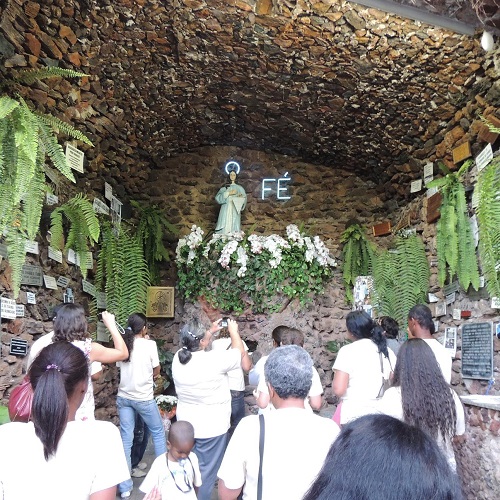 Il 27 luglio 1955, in un luogo accidentato e boschivo alla periferia della città di Itaúna, iniziarono a registrarsi fenomeni straordinari. Inizialmente gli spettatori furono tre bambini di circa 8 anni (Eduardo Vasconcelos, José Rita e Antônio Nunes), che stavano inseguendo un cavallo: dall’alto di un dirupo videro l’animale immobile, incurante dei loro richiami. Si decisero quindi a scendere sul fondo, dove ebbero la prima visione di Maria Santissima.